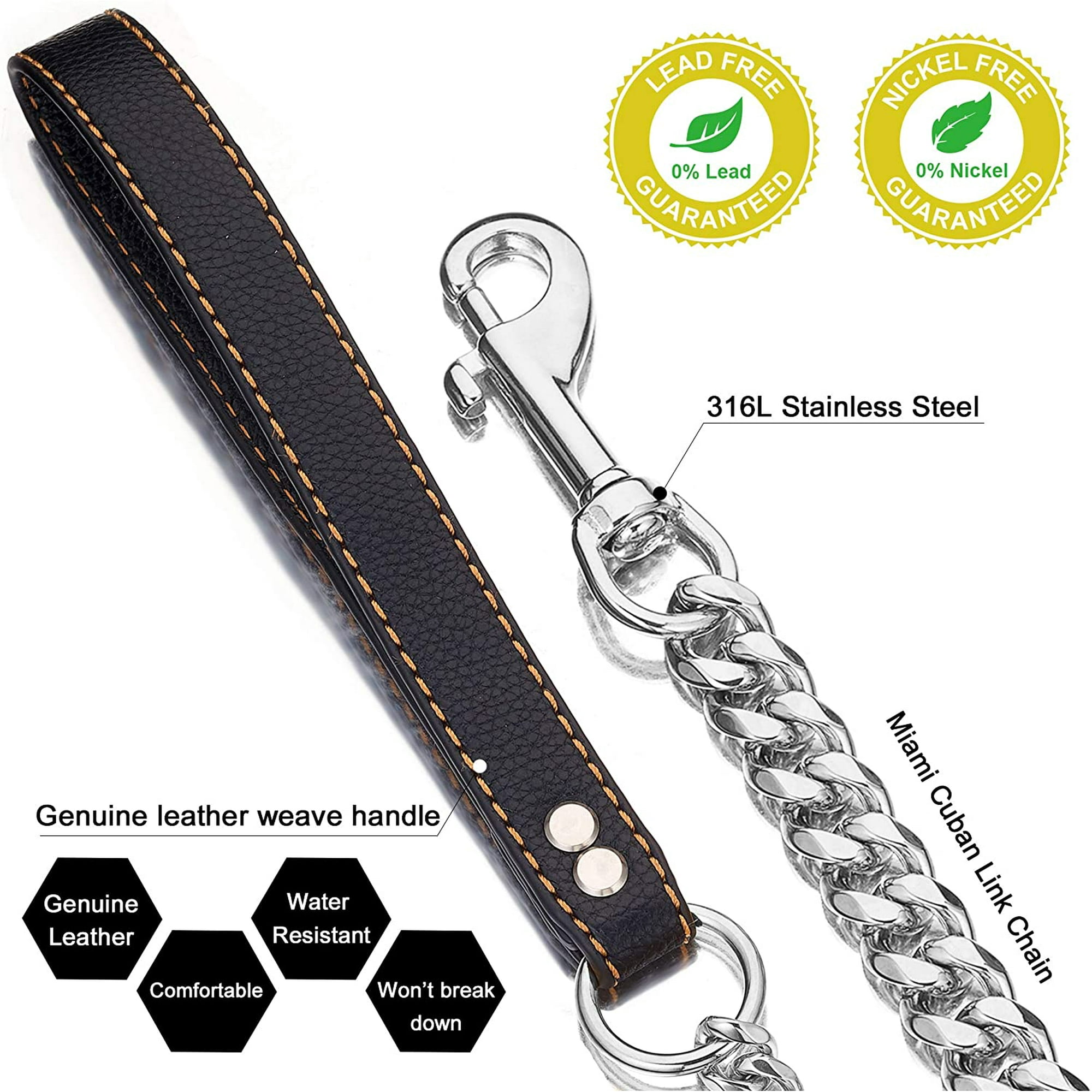 Chain Dog Leash Metal Chew Proof 15mm Heavy Duty Pet Leash Chain With Leather Padded Handle For Large Medium Small Dogs 2ft Walmart Canada
