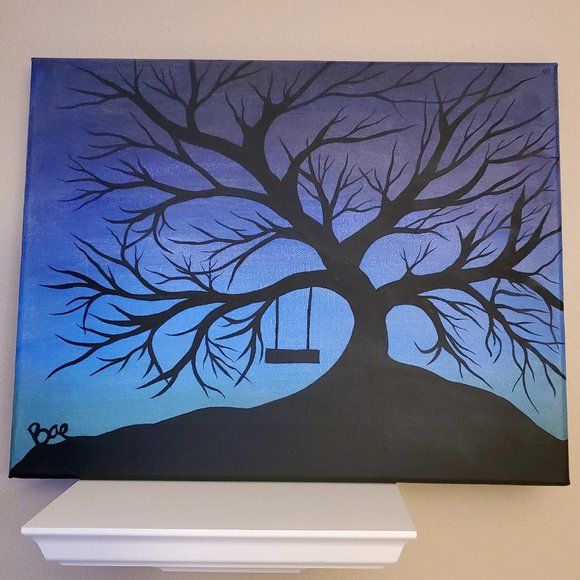 Hand Crafted Wall Decor Black Tree Silhouette W Swing Acrylic Painting O Poshmark